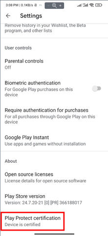Nyisd meg a Play Áruházat -> jobb felső sarkok saját profil fotó -> Beállítások -> Névjegy -> Play Store verziót nyomkodni 8..10x amíg be nem lép a fejlesztői módba -> Általános -> Fejlesztői beállítások -> Integritás ellenőrzése -> Tesztelni fogja és kiírja az eredmények. -