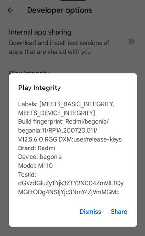 magában a Play Store-ban is elő lehet hozni a Play Integrity API check ellenőrzés értékét amit maga a Play Store csinál: