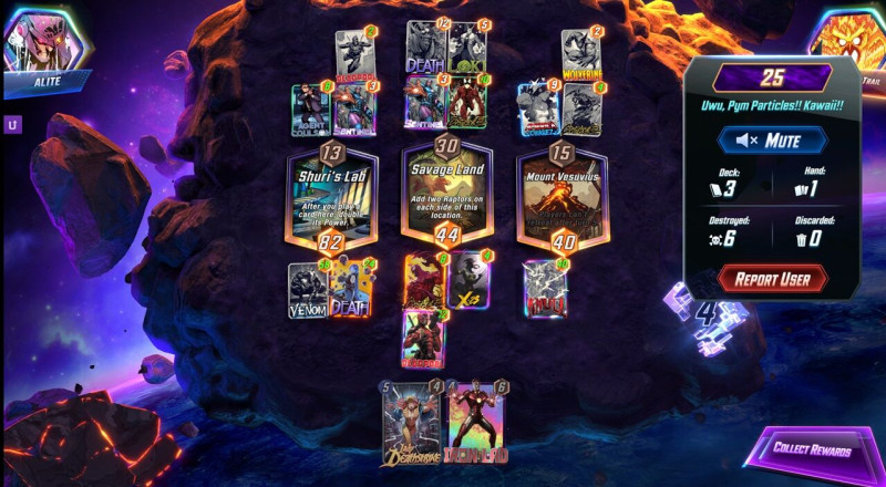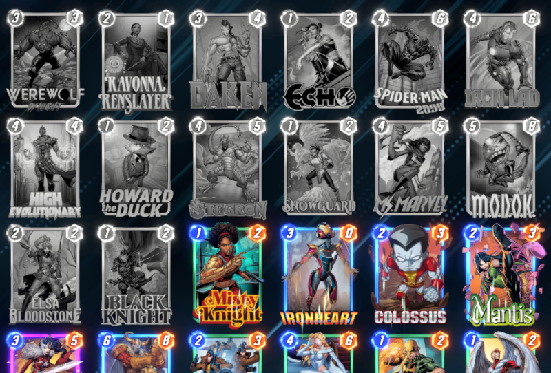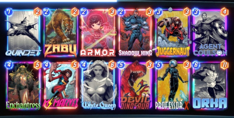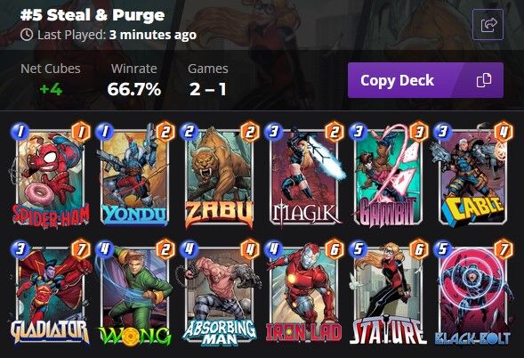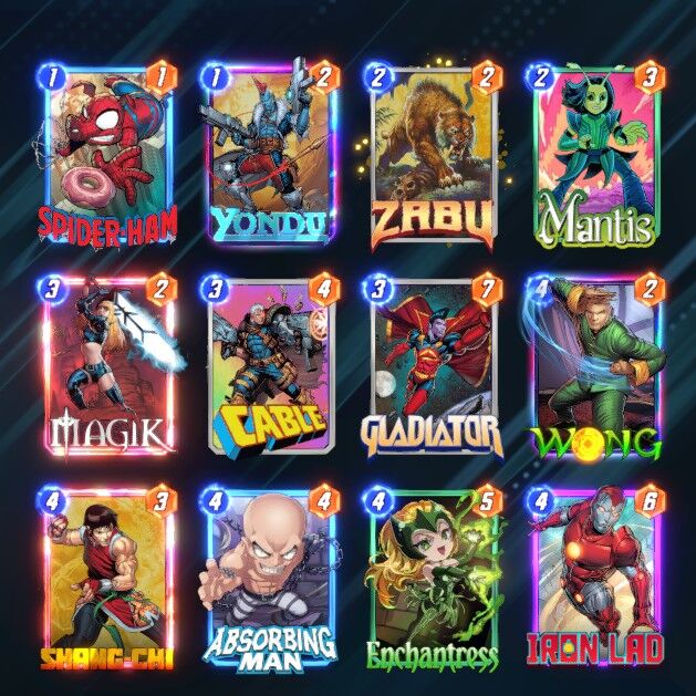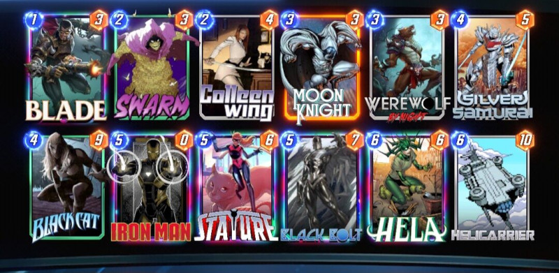 A Sang Chi + Absorbing man duplára senki nem számít a végén. Illetve nagyon ki tudnak fogyni a lapokból ha Kábel vagy mantis közül valamelyik bejön. Amikor meg Knull-t lopom el, hát az a csúcs.