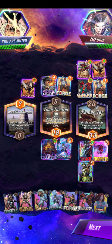 Így első blikkre a lényeg a T1-T4 prio szerzése és DD lerakása, aztán T5-on (hála a prioritynek) ellenfél szétszopatása Negasonic, Cosmo és Gamora által. Elég piszkos, pláne, hogy nem rámpázó pakliban a DD nagyon sokak fejében egyenlő Proffal, szóval a mindgame is nagyon ott van.