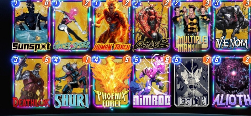 Szerintem egy baromi jó lap, de ahogy néztem csak Loki-ban terjedt el..Vision-t lecseréltem közben Killmonger-re, egész sok Zoo/Thanos/Bounce jön szembe.