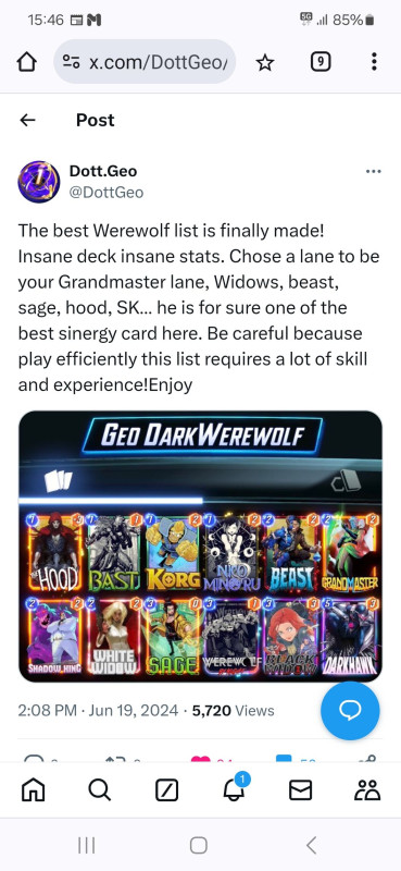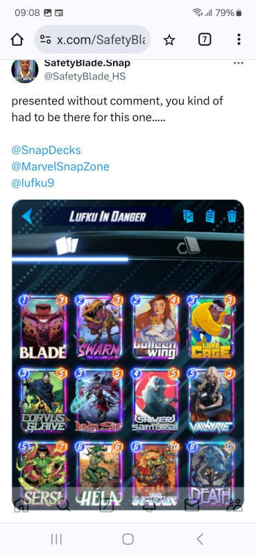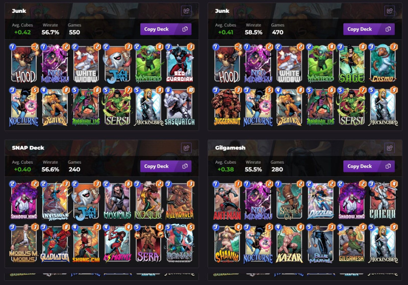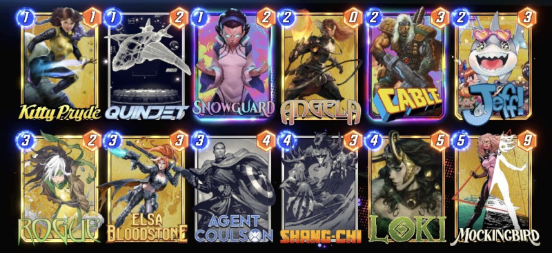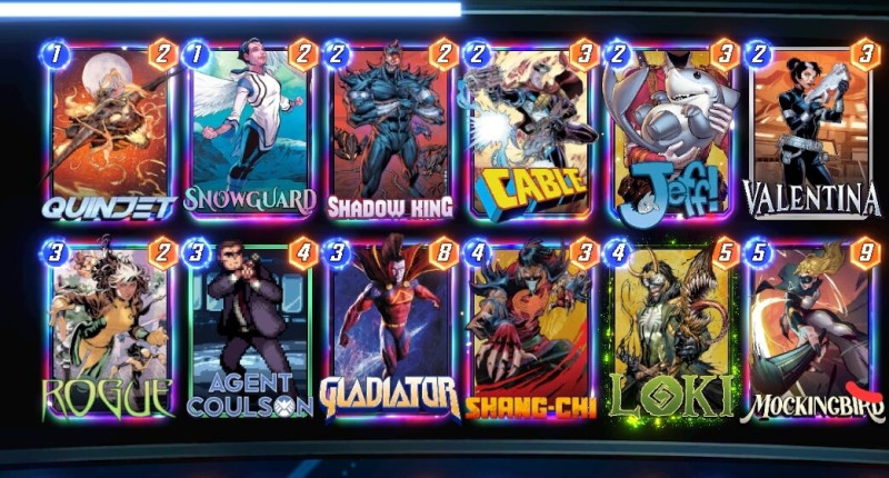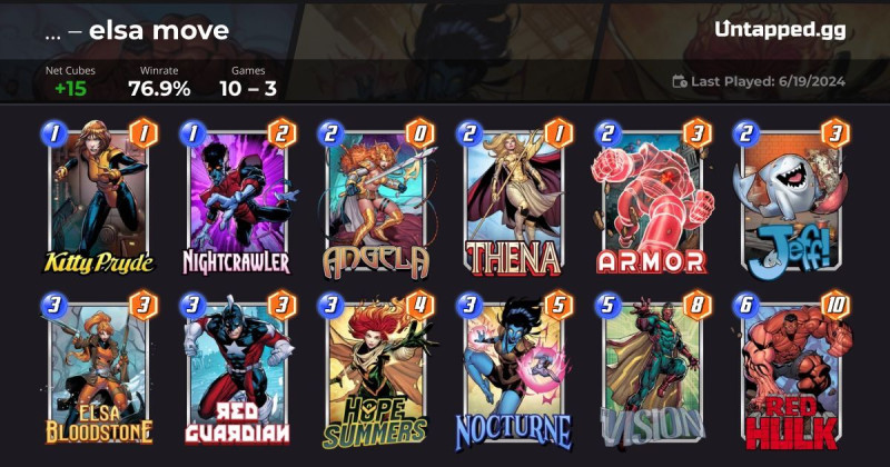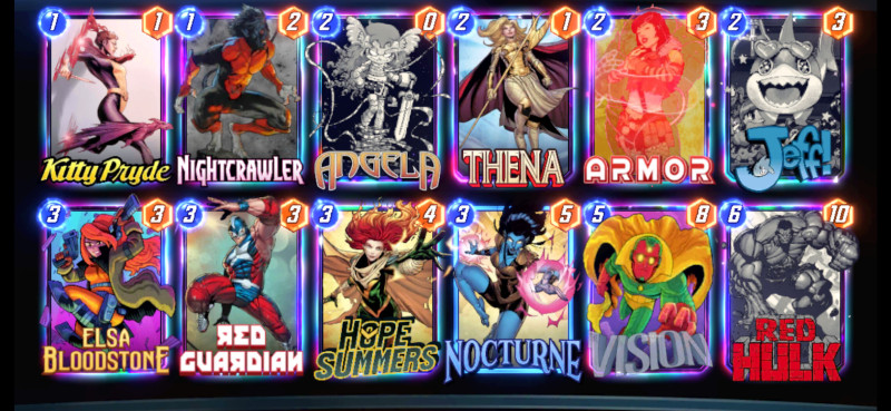Most ezzel tolom pár napja.Nagyokat lehet vele menni rank 6000-ről most 3000 alatt játszogatok.Nocturnet külön ide vettem meg 6000 tokenért.Aki esetleg gondolkozik rajta annak melegen ajánlom.kb jeff 2.0 + scarlet witch eszméletlen erős lap