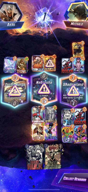 Viszont Thena hozott jo par 4 kockas gyozelmet, ugy hogy az ellenfel nem kalkulalta bele, hogy hiaba reseteli Shadow King-el az erejet, ha 2 lapot tettem le a korben akkor kor vegen megint kapja a buffot.