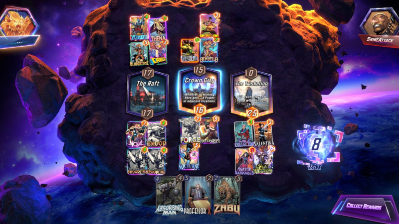 Vagy az új tier top deck ami futtat Mockingbird-t, Sasquatch-ot, Iron Man-t. Kiszedted Angelát, én még mindig tudok támadni 3 lane-t.