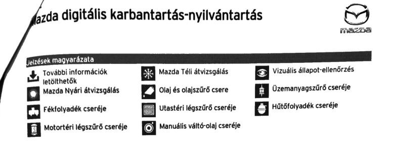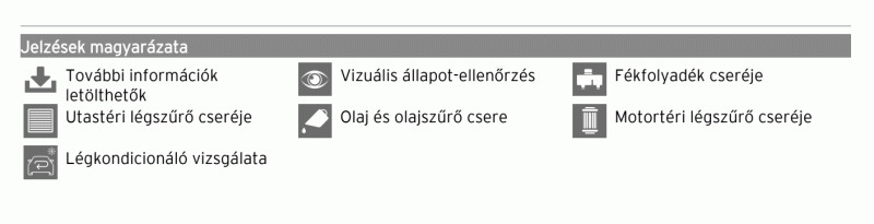 van valamilyen elérhető jelmagyarázat a digitális szervizkönyvön szereplő ikonokhoz?