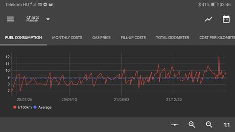 Nyilvan nem normalis a liter/1000 km koruli fogyas, nekem sem kell cserek kozott toltogetni altalaban (elmult evben mar inkabb 40/60 fele tolodott a varos/palya aranya). Ettol fuggetlenul masfel eve volt par sietosebb hosszabb ut, akkor pl. elerte a minimumot a szint par honappal a csere elott...
