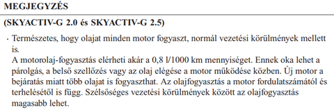 - a valtoolajra nincs megadva csereintervallum, Mazda szerint nem kell -> de kell!