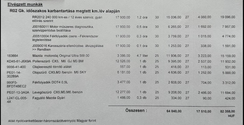 A Mazda Magyarorszaggal futottam nehany kort korabban, nem kaptam ertelmes reakciot hogy ez mitol lehet, szoval szervizek utan mindig lefotozom a szamlat meg lementem az pdf-eket, igy lesz meg kesobb is.
