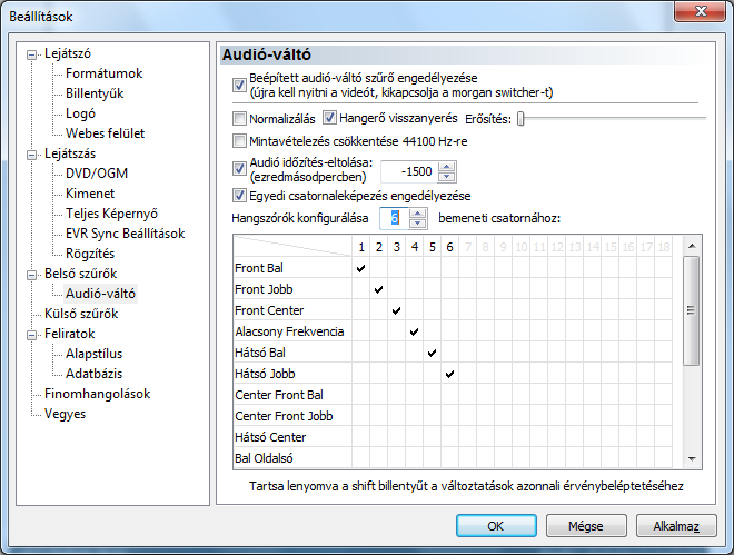 Hogy lehet beállítani az MPC-HC-t (vagy a K-Lite Codec Pack-ot), hogy lekeverje az 5 csatornát 2-re vagy 2.1-re, mint az asztali DVD lejátszóm?