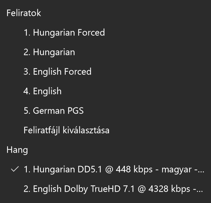Elindul a film, jobb klikk a képernyőn, és előjön a menü, ahol tudod váltogatni a hangsávot, feliratot.