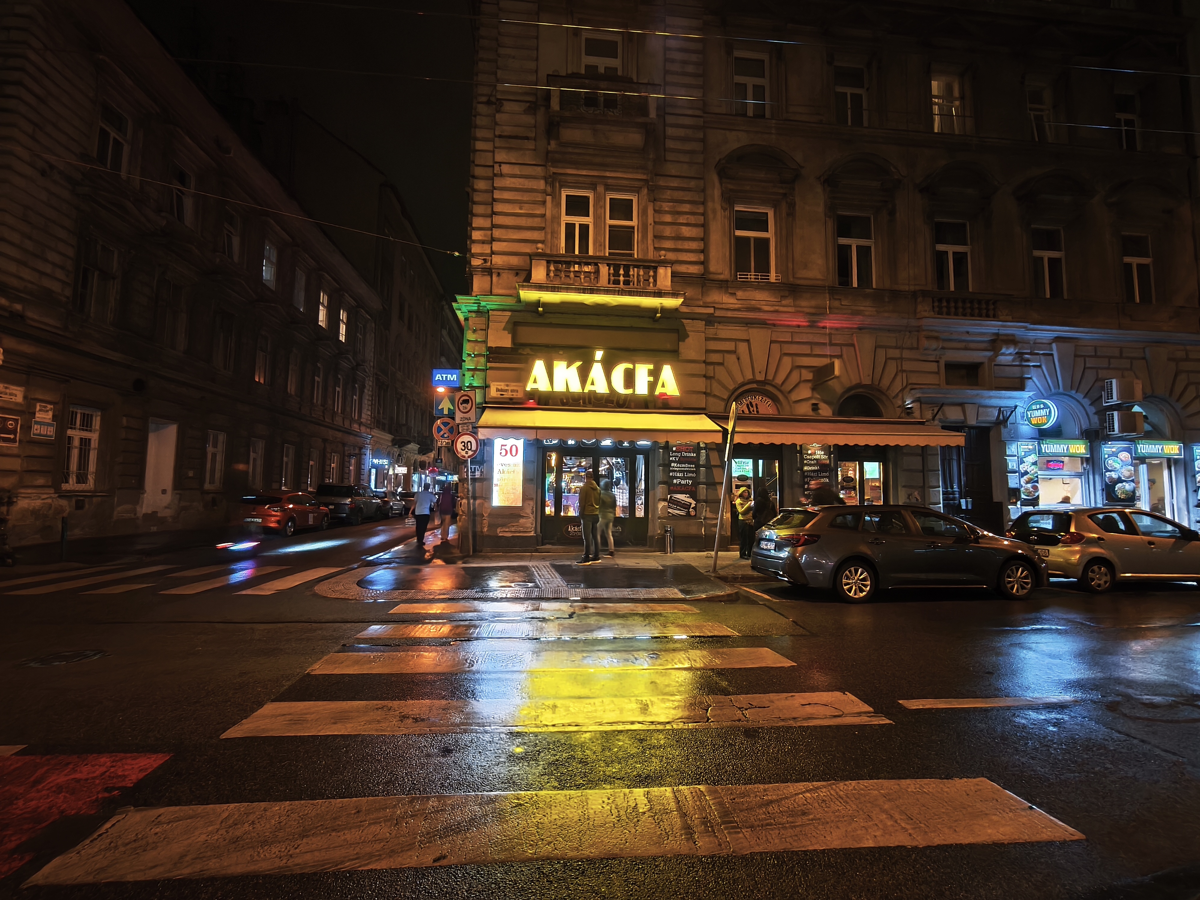 Egyelőre csak esti fotók vannak, szubjektíven jónak mondanám (de a Vivo X200 Pro annyira megfertőzött, hogy remeknek már nem tudom nevezni ezeket, főleg a zoom esetén...) A fotók egy része vöröses árnyalatú (ezt bármelyik szenzorral tudja hozni), az ég világosítását és színezését is sok helyen Instásan túltolja, pedig Authentic képmódban fotóztam. Viszont érdemes a főkamera alkotásait megnézni, koherensen éles az egész kép, nincs a szélek felé homályosodás (jegyzetelsz ugye, kedves Samsung?!) Az éjszakai mód automatikusan kapcsol be, 1-2 másodperces záridőkkel dolgozik, nem nehéz kitartani az OIS miatt, de a mozgó tárgyak szellemképesednek, ezen úgy látom, nem kozmetikázik semmit utólag, ahogy a világítótestek becsillanását sem radírozza ki. Gyenge fényviszonyok között a kereső képe olyan szinten szaggat, hogy néha élvezhetetlen a pozícionálás. Az ultraszéles szokásosan elég vérszegény éjjel (az élőkép alapján elég retkedéknek tűnik, de a végtermék azért jobb egy ugrással), a 2x-es érték is elengedhető ilyenkor (ugyanígy az "UltraHD" teljes felbontás is, mivel nem marad meg rajta több részlet), az 5x-ös periszkópos pedig amikor van kedve dolgozni, akkor egészen értékelhető eredményeket szül (szeret digitálisan belenagyítani sötét környezetben...) 20x-os érték felett elvileg az AI belejavít (ez lehet kikapcsolt, automatikus, vagy folyamatosan aktív), de elég kretén jelenleg, ebben gyengébb, mint a Vivo/Honor. Szelfinél a 32 megás fixfókuszost pedig elfelejthetnék végre (mondjuk, ezt a Xiaomi 17 megteszi).