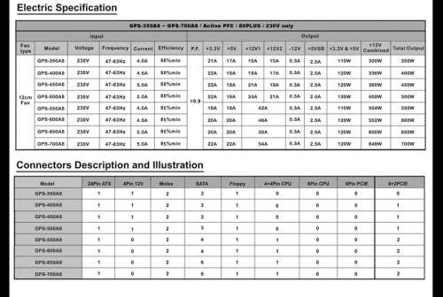 Mindkét táp max. teljesítménye a 12V-os ágakon 500W körül mozog.