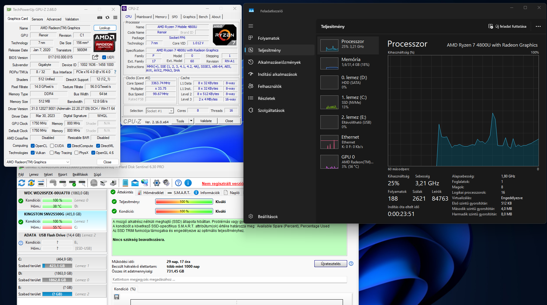SSD: Crucial P3 1TB M.2 SSD (CT1000P3SSD8) ~12-13kA VGA-n kívül semmire nincs garancia, de minden hibátlanul működik.
