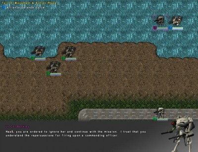 Igazából az artillery-vel van meghülyítve a dolog, egy komplett kör három fázisból áll, artillery kilövés, mozgás-támadás, artillery becsapódás. Mókás! Jah, ez a negyedik fegyvertípus, szintén a lépegetőkre (VA) szerelhető, ugyanúgy lefoglal egy slotot.A VA-kba nagyon mélyen nem lehet belenyúlni, csak a két fegyvert lehet cserélni (fegyó van bőven), persze nem akármit, akárhova. Kettő darab accessory slot van, ide lehet pakolni cuccokat: extra armor, energia, ammo, miegyéb.