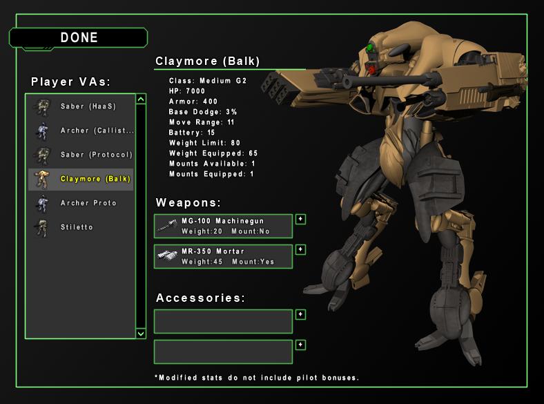A demóban a legjobb VA egy Claymore, ez egy komolyabb artillery VA, amiben Balk bácsi szundított egy tó mélyén... (a pilóták is cserélhetők):