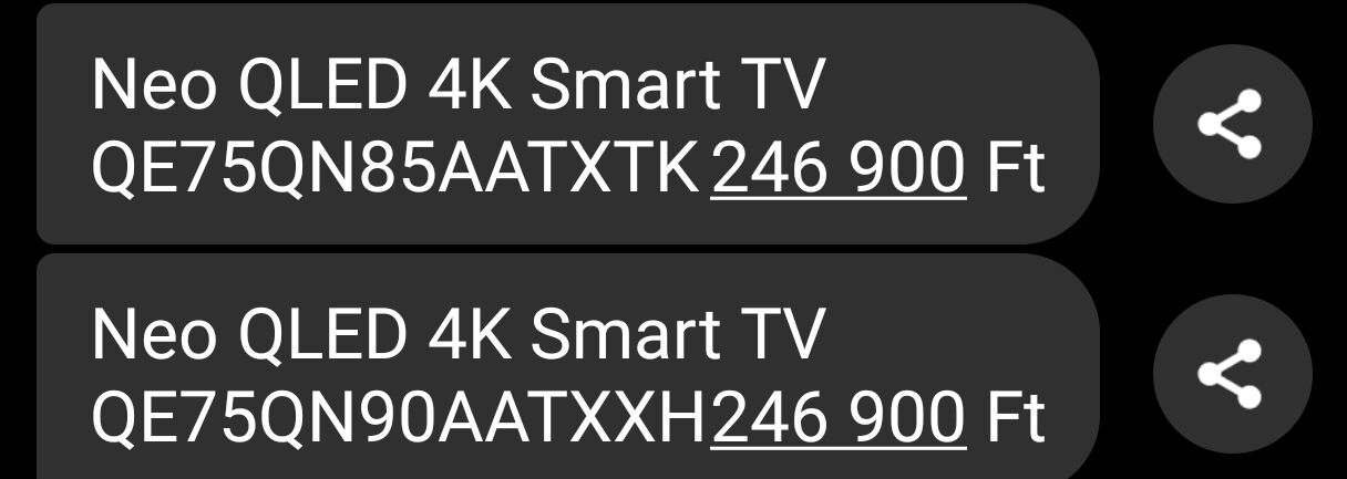 ) utan 340k volt az ara. 75" 8K QLED. Sajnos az ujabb 4K QLED modelleket elkapkodtak elolem, pedig olyat akartam, azok csak 250k-ba kerultek. Egyelore kimaradok az OLED forradalombol, de szerintem ezzel is jol jartam. Cserebe 10"-al nagyobb es 4x annyi pixel (mondjuk az nem erdekel).