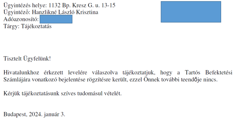 IBIE TBSZ: dec.15.-en nyitva, ~dec.23.-an NAV-hoz beadva, ma jött tarhelyre: