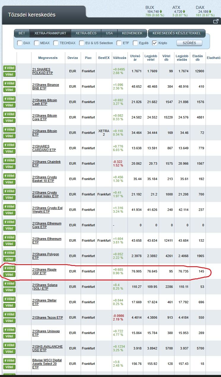 én ált lazán google-be írom be az ISIN-t, hozzátéve, hogy erste. Aztán máris látod, elérhető-e náluk v sem. odairányít a G a megfelelő oldalra. Itt egy kép, hogy a netbroker felületén hogy éred el. Xetra, kripto, ott van az XRP