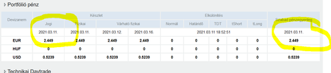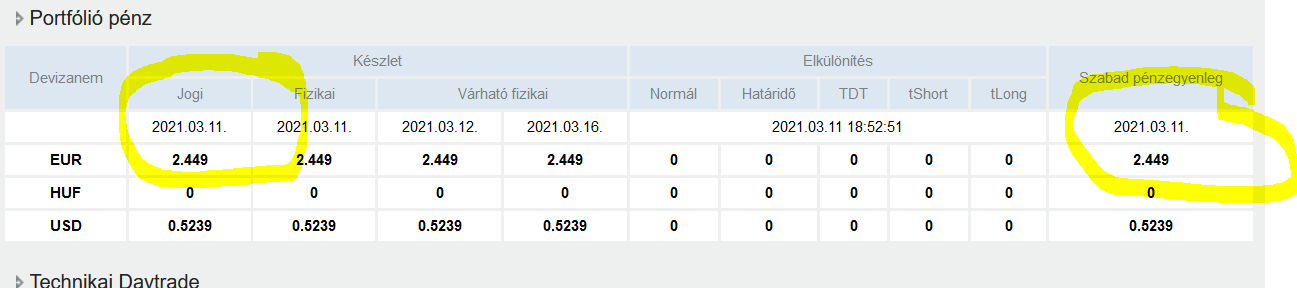 Elolvastam a dokumentációt és ott azt írják, hogy a jogi összeggel azonnal lehet kereskedni. Viszont ha én beadok egy megbízást, aminek az értéke kisebb, mint a jogi összegem, akkor nem engedi és arra hivatkozik, hogy nem elég az egyenlegem, majd mutatja a fizikai egyenlegemet. A fizikai valóban nem lenne elég, de hát vásárláskor az irreleváns...