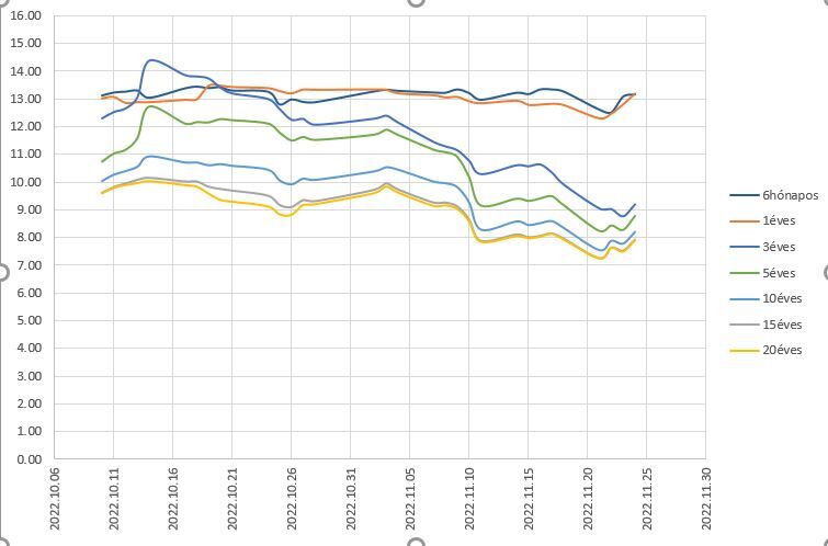 Megint nem változtak ma a kincstári hozamok. Úgy látszik, ez lesz az új rend, hogy csütörtök déltől hétfő délig ugyanaz a hozamszint. Hm.