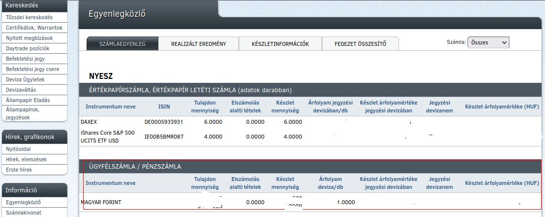 Bocsánat benéztem, NYESZ-en van a be nem fektetett összeg. Innen ki tudom venni egy részét? Pirossal jelölt résznél van az összeg a lenti képen.