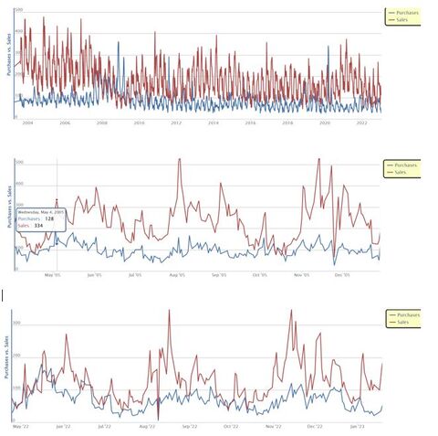 + az insidereket (kék vonal, 2020 március), ők poénból nem vásárolgatnak.