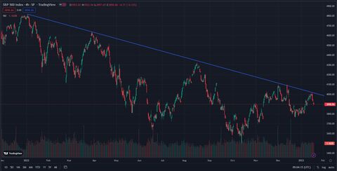 Jelenleg úgy látom, hogy ha a FED valóban >5% kamat mellett dönt, akkor azért lesz esés. Ha pedig pivot lesz, akkor az azért lesz, mert a gazdaságban eltört valami. Akkor azért lesz még nagyobb esés (hard landing).Tévedhetek (szoktam). Ez esetben sajnos kimaradok egy adag emelkedésből. Ha SPX 4300 fölé megy, akkor sajnos kénytelen leszek drágán vásárolni be.
