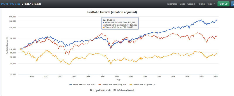 Német ETF-be fektetve kb annyit ér a pénzed ma, mint 2000-ben, Japán ETF-nél még annyit sem, SP500 meg szárnyalt. de az is inkább csak 2014 után.