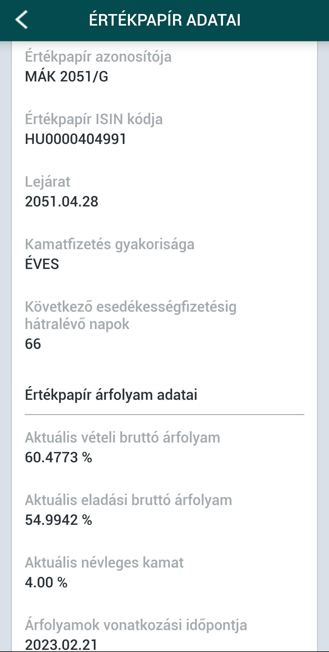 Köszi a részletek megosztását. Annyi nekem is feltűnt, amikor a visszaesést láttam, hogy csak az árfolyam mozdult, a hozam maradt ugyanannyi, ami nem lehet helyes, hacsak a dátum nem változott, de ezt már nem nyomoztam tovább (betudtam hibának, volt már hasonló). De még megvan az akkori állapot, valóban úgy van, ahogy írtad, 10 óra után nem sokkal visszaállt a 2023.03.06 egy időre.
