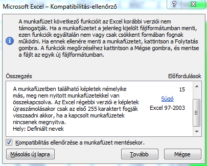 Apukám régebbi office-t használt talán 97-2003 nem tudom melyik. jelenleg nekem 2010 van és amikor az exel táblázatait az enyémmel akarom menteni egy ilyen dolgot ír ki: