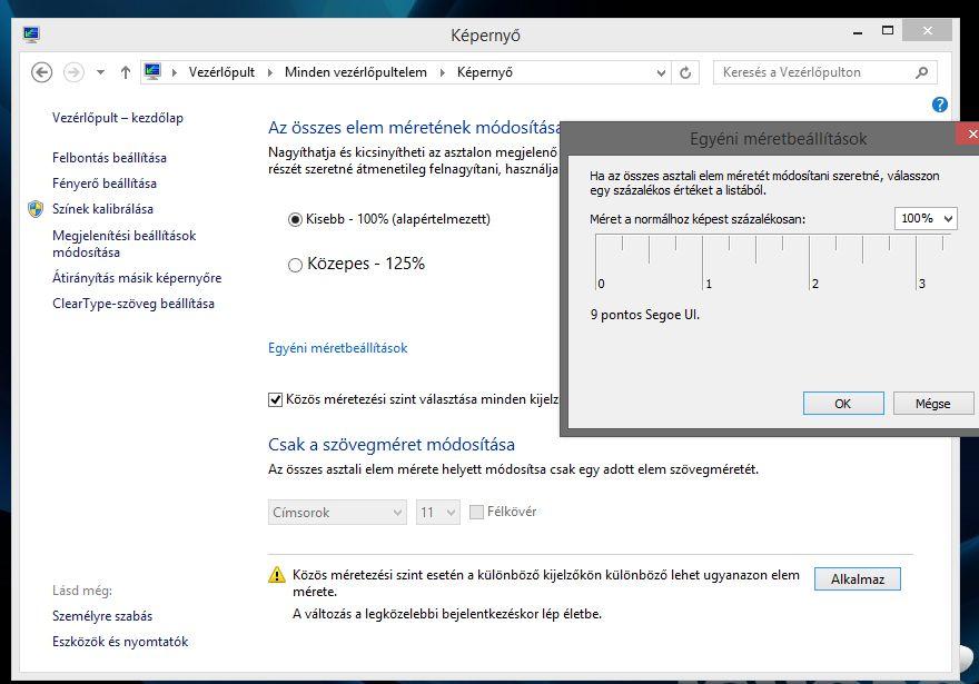 Az intéző menüje is nagy egy picit, de az nem annyira zavaró. Lehet, hogy valami a megjelenítésnél van elállítódva? Ott ahol a szöveg és egyéb elemek méretét lehet állítani, alapon van minden.