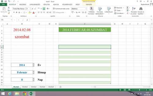 Szóval a B3 cella, mindig az aktuális dátumot, a B5 pedig a hozzá tartozó napot mutatja, ezzel nincs gond.