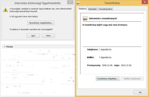 -Indításnál felfdob egy ablakot miszerint lejárt a tanusítvány :