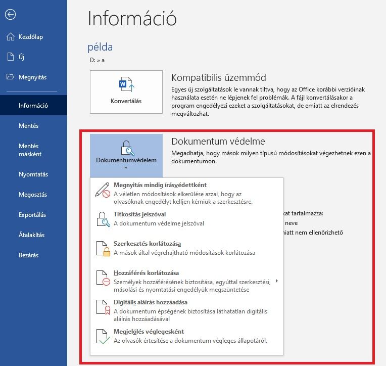 "Nem" - Ez esetben ki lehet kapcsolni a dokumentumvédelmet és módosítható a doc fájl, nem kell más néven és/vagy máshová elmenteni. -