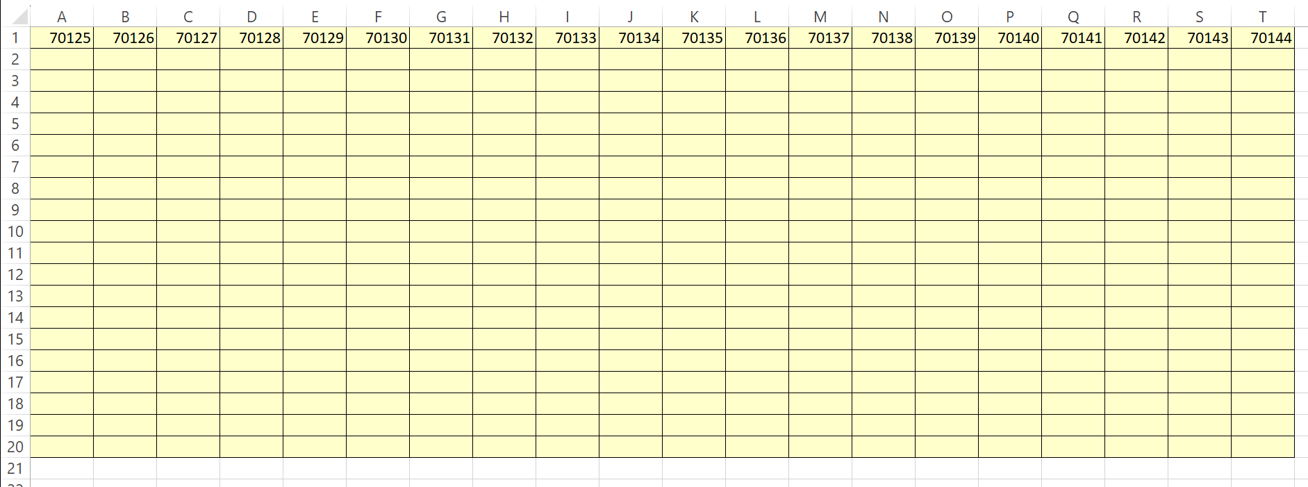 Üdv! Excelben hogyan tudnám a sárgával jelzett területet sorszámozással kitölteni? Tehát hogy az A2 cellában 70145-tel folytatódjon (csak példák a számok, nincs jelentősége). Az első sort ugye jobb klikkes kitöltőnégyzettel csináltam: első szám beír A1-be, aztán jobb klikkel kihúzom a sor végéig, majd kitöltés adatsorral. Talán van erre valamilyen függvény! Köszönöm!