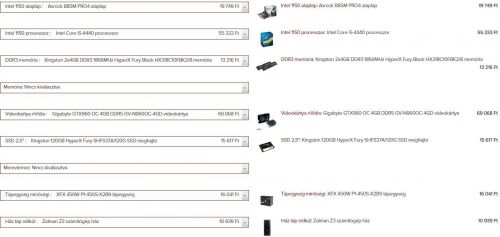 - HDD: ahogy elnéztem az 500 és 1000 GB-os termékek között nincs sok különbség, inkább az 1 terásat preferálnám, de ha 500 GB-ossal valamilyen másik modulból jobb jön ki akkor persze maradhat.Előre is nagyon szépen köszönöm