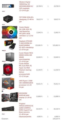 A RAM-ot kell már csak megszülni, azt viszont lehet megrendelem máshonnan, PCX-en drágábbak (a többi komponens viszont korrekt áron van, talán még a VGA feláras picit). MAX lappal ugye BIOS frissítésre sincs szükség... viszont nem bíbelődnék az összerakással, azt a hozzáértőkre hagyom... ugyanakkor 2 db. memóriát talán magam is be tudom rakni