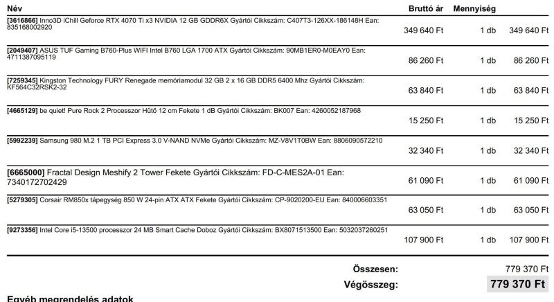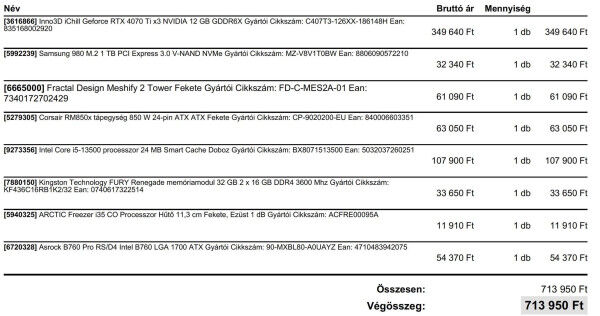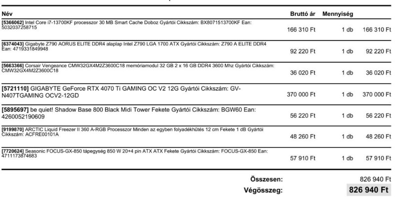 Összeállítottam egy PC-t nagyjából az általatok ajánlott DDR5 és DDR4 alkatrészekből. Továbbá kértem egy ajánlatot egy bolttól is, itt láttam a nevét.