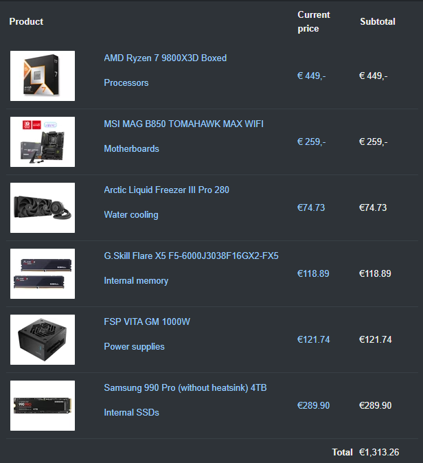 2027 - ig garis alaplap (MSI B550 TOMAHAWK) 43k, teljesen új 5700X - es proci 3 év garival 55k. Táp ugyanaz amit már írtam. Ez összesen 118k. -