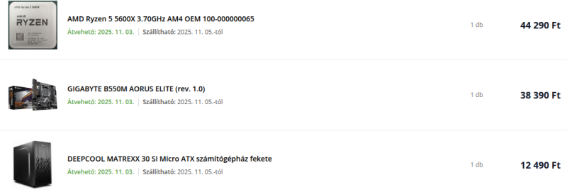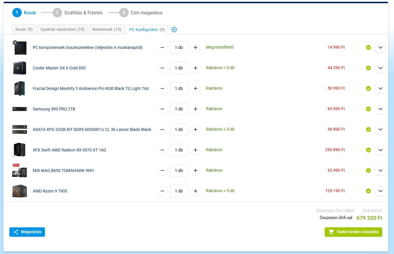 Procikbol ajánlott: 7500F - 60e, 7700 - csak ha találsz 100e alatt, 9700X - 110e, 7800X3D - 130-140e.
