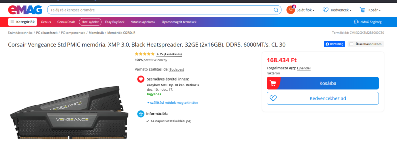 Aquanál is 3k, illetve a websiteos customer support annyira segítőkész, hogy fontolgatom, hogy inkább választok 1-2 másik alkatrészt és alzától veszek mindent. Bármit kérdezek oda dobnak egy linket, hogy itt megtalálod alzánál meg meg is keresik és kiemelik ami releváns, vásárlás után nem tudom ez mennyire változik, de utóbbival lehet szívesebben kommunikálnék, ha probléma van. Pedig van mindenük amit akartam és konkrétan munkahelyemmel szemben van egy üzletük átvenni a cuccokat.