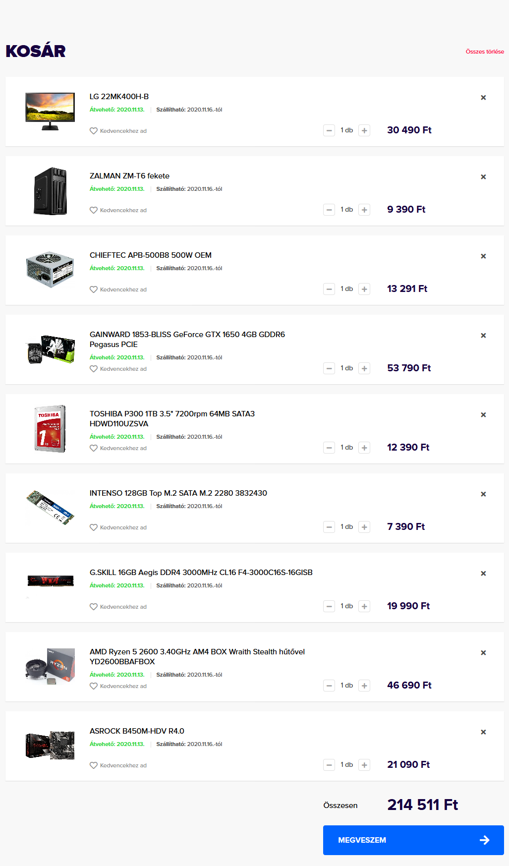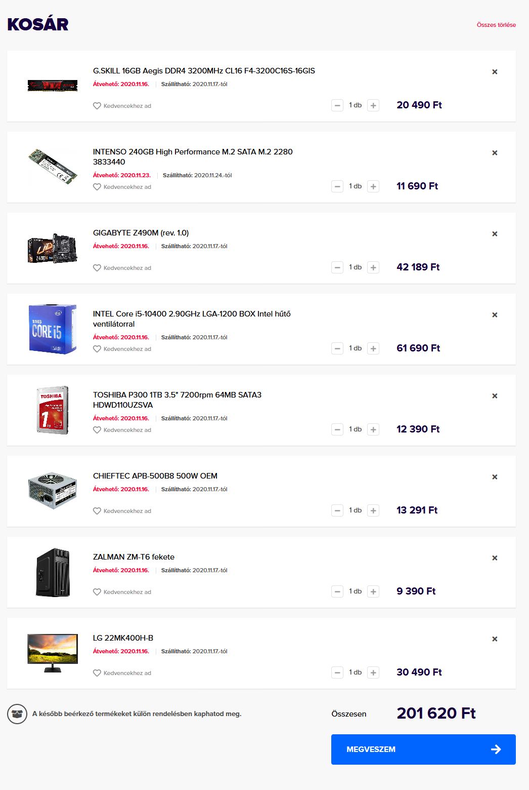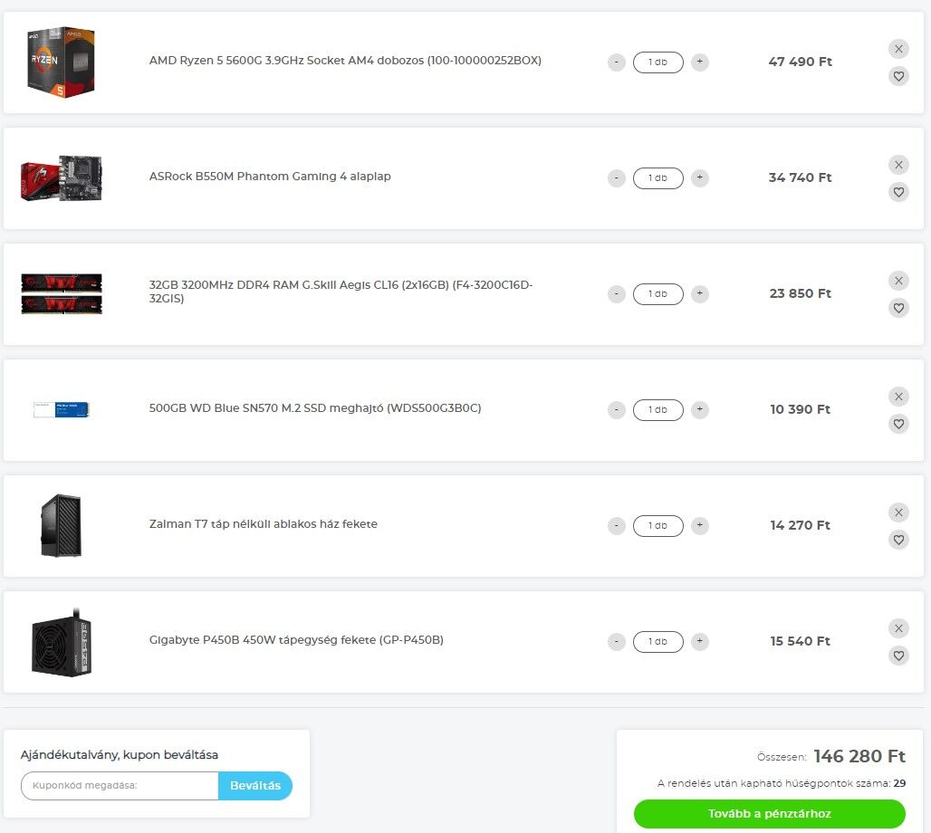 Az alkatrészek újak és használtak is lehetnek vegyesen, nem zárkózom el a Hardverapró vadászásától.