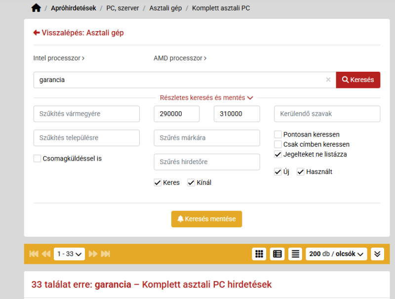Válassz azokból egyet. Írd be szűrési feltételnek, hogy 290-310 e Ft + garancia és nem kapsz 1000 találatot csak 33 -t! Abból válasz 1-2 db -s és segítünk...