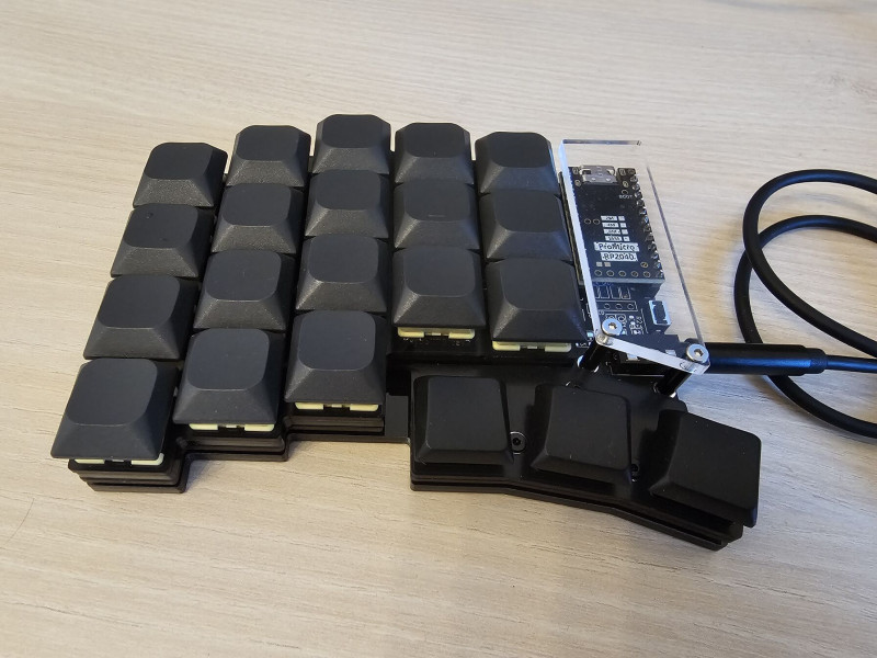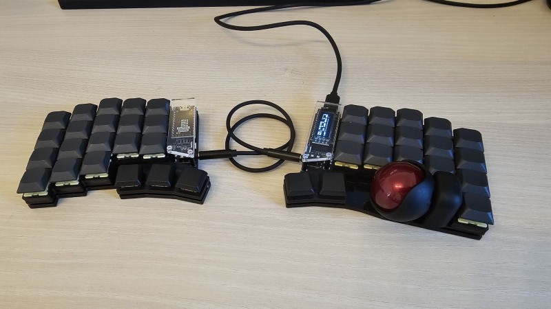 A firmware-rel küzdök most, picit átszabtam a kijelzőt, illetve alapból nincs sniping mode, azt nekem kellett lekódolni. Jelenleg még a trackball scroll nem megy, azt debugolom. Illetve a tap hold sem pont úgy viselkedik, mint a Charybdisen, pedig elvileg mindent áthoztam, de valami még nem ok, nem érvényesül a permissive hold beállítás a home row modokon...