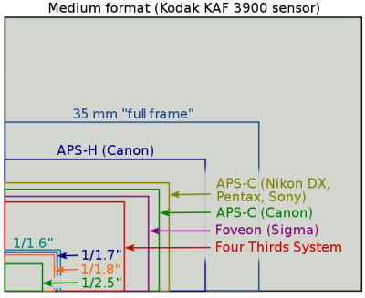 A mai zsúrkamerák 150-200 körül, kb a legkisebb zöld téglalapot (1/2.5)" személyesítik meg. Ehhez képest a videósok kapnak 550D-vel egy APS-C szenzort, a maga dof-jával + cserélhető objektívekkel, amik megint közelítenek a filmkameráknál használt objektívekhez (nem fos műanyaglencsék)