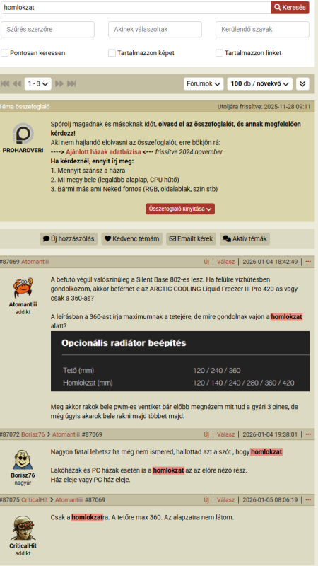 A befutó végül valószínűleg a Silent Base 802-es lesz. Ha felülre vízhűtésben gondolkozom, akkor beférhet-e az ARCTIC COOLING Liquid Freezer III Pro 420-as vagy csak a 360-as?