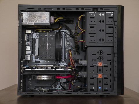 Határozottan három részre osztva, ami egyrészt jó, mert könnyű elszeparálni a dolgokat és elrejteni a felesleges kábeleket, másrészt komolyan nehezíti a szerelhetőséget. Sokáig elszórakoztam vele, mire véglegesítettem a kábeleket is, de olyan jól sikerült, hogy a hátlapon lévő szigetelőanyagnak érezhetően nem volt útba, simán a helyére csúszott. Sokat jelentett volna ennek ellenére, hogyha még van mondjuk 0,5-1 cm hely. A csavarokkal itt sem voltam elégedett, illetve néhány sarokban láthatóan már nem jutott elég festék, ami egy ilyen árú ház esetén szvsz nem megengedhető.Üzem