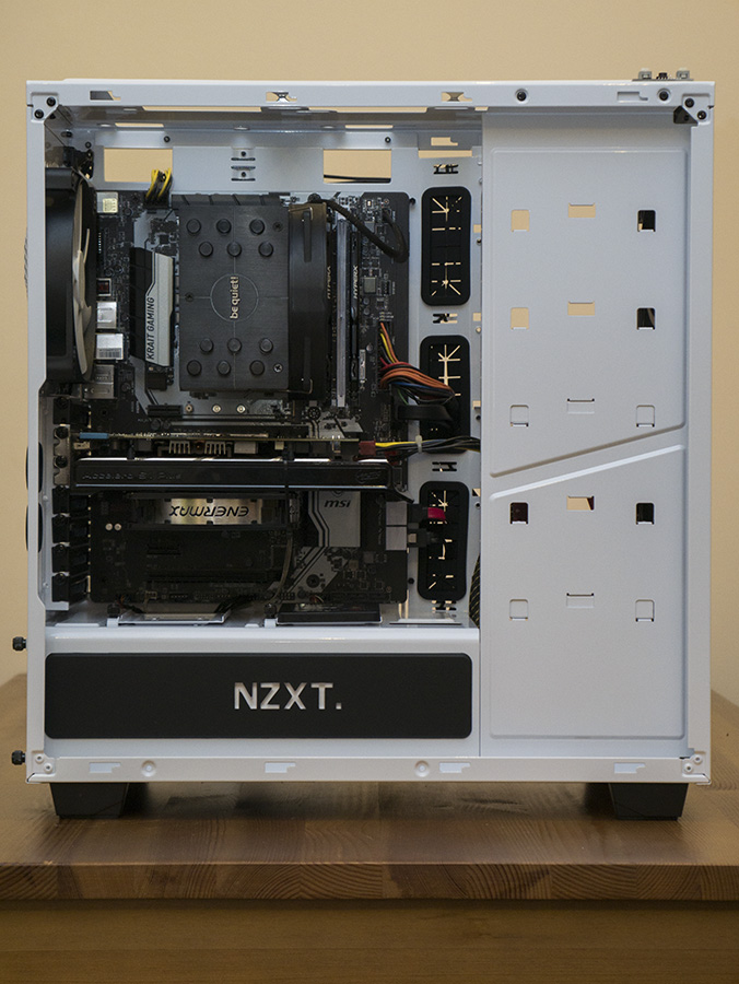 Egy első generációs Xigmatek Asgard-ot váltott az NZXT H440 v1. Volt előtte egy Noctisom, bár beépítve nem lett a gép, de az sokkal nagyobbnak érződött, pedig ugye a vázuk megegyezik. Sikerült aprón jó áron és újként megcsípni a H440-et, igaz ez is első gen. A v2 nem sokat változott (PWM hub, több SSD hely, ellenállóbb festés, 1-2 cm-rel nagyobb), egyenként egyáltalán nem döntőek, együtt is csak talán.Külső