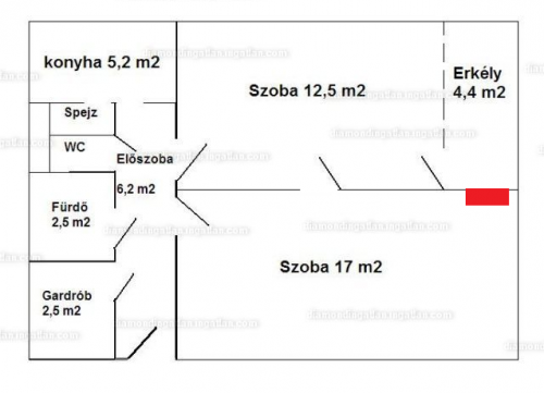 Adott az alábbi alaprajzú lakás, ebbe szeretnék légkondit rakni, a pirossal jelölt rész lenne az optimális, mert könnyen ki lehet vezetni az erkélyre.