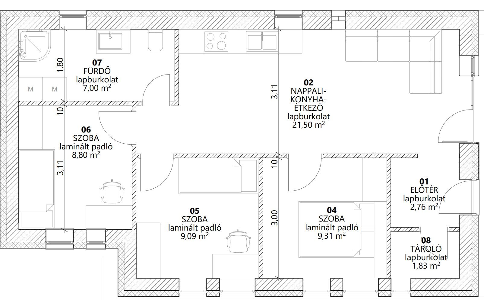 Az alábbi kialakítású, nagyjából 60m2-es, új építésű, 15cm-es grafitos szigetelésű, infra fűtőfóliás padlófűtésű házba szeretnénk légkondiciónálót beszereltetni.
